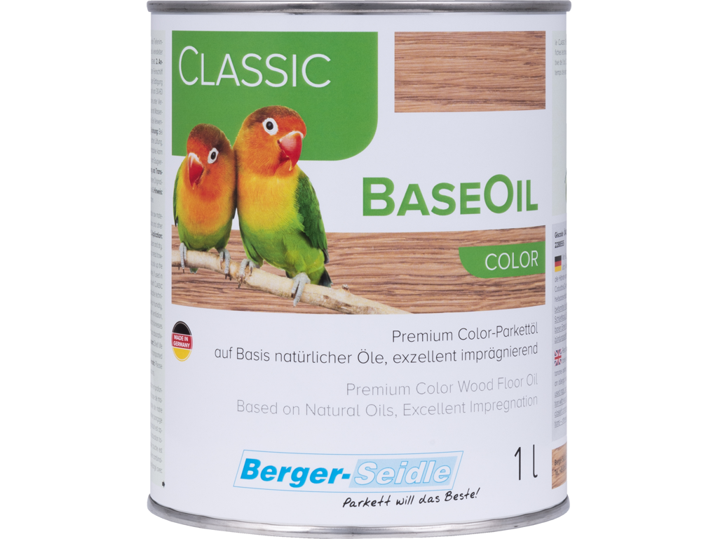 Classic BaseOil är ett High-Solid oljesystem. Denna miljövänliga impregneringsolja för parkettgolv har en hög andel fasta partiklar och en djupverkande effekt tack vare naturliga oljor. Förutom den neutrala varianten finns det också pigmenterad olja som exempelvis Classic BaseOil Color, en "oljebets" som används för att få en jämnare infärgning. Classic Base Oil blandad 10:1 med Classic Plus Härdare, kan överlackeras med AquaSeal® CeramicStar, AquaSeal® GreenStar, AquaSeal® EcoGold, AquaSeal® NordicWhite, samt med SolvSeal LT-Export Extra och Classic HardOil. Om man vill behålla träets karaktär med öppna porer kan man efterbehandla det med ett andra lager Classic BaseOil eller med Classic 100ProOil och Brilliance SuperWax. Man kan också stryka på ett lager Brilliance OilCare.